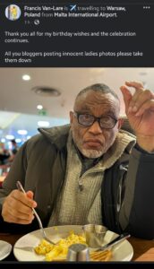 However, Francis earlier dropped an appreciation post for the wishes he got on his birthday then he debunked the news and asked bloggers to take down pictures of ‘innocent ladies’.