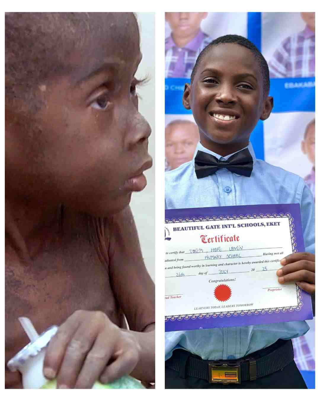 Hope, the Nigerian boy once branded a “witch” and abandoned by his family in 2016, has graduated from primary school, a milestone that marks a powerful turnaround in his life.